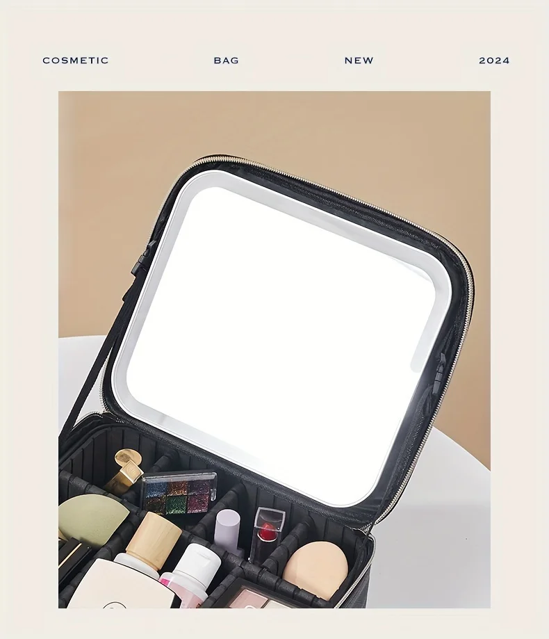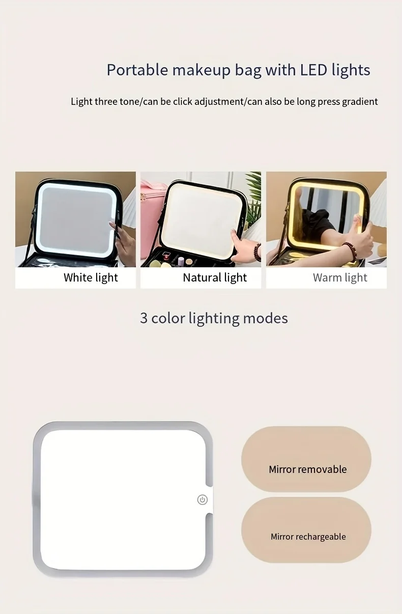 LED Mirror Cosmetic Bag, Portable and Spacious for Travel