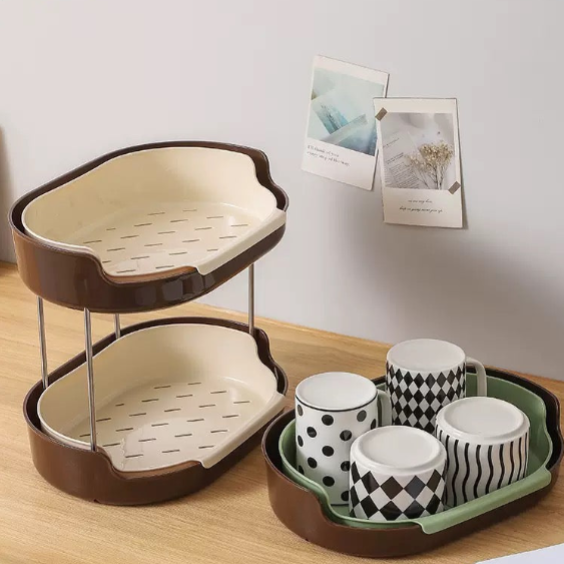 Detachable Desktop Storage Rack – Hollow Design Drain Tray Organizer Shelf
