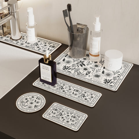 Multi-sized Black and White Vintage-style Water-absorbing Mat