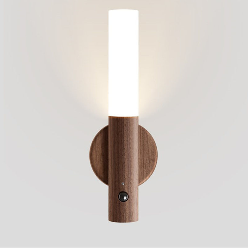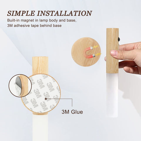 No-Drill Magnetic Walnut Motion Sensor Wall Lamp - Wireless Convenience and Elegant Design