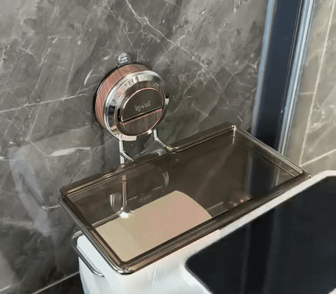 No-Drill Suction Walnut Wood & Steel Toilet Paper Holder