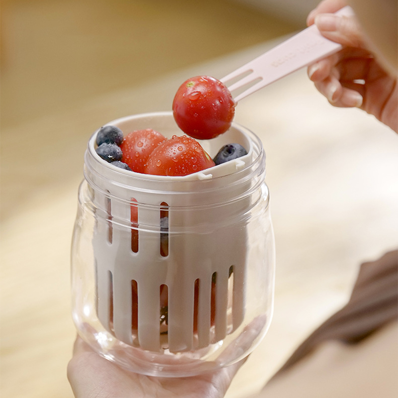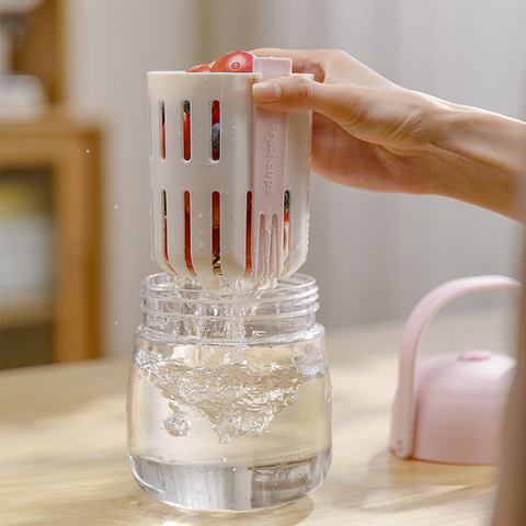Inner layer features drainage holes—rinse and strain fruits or veggies directly in the cup.