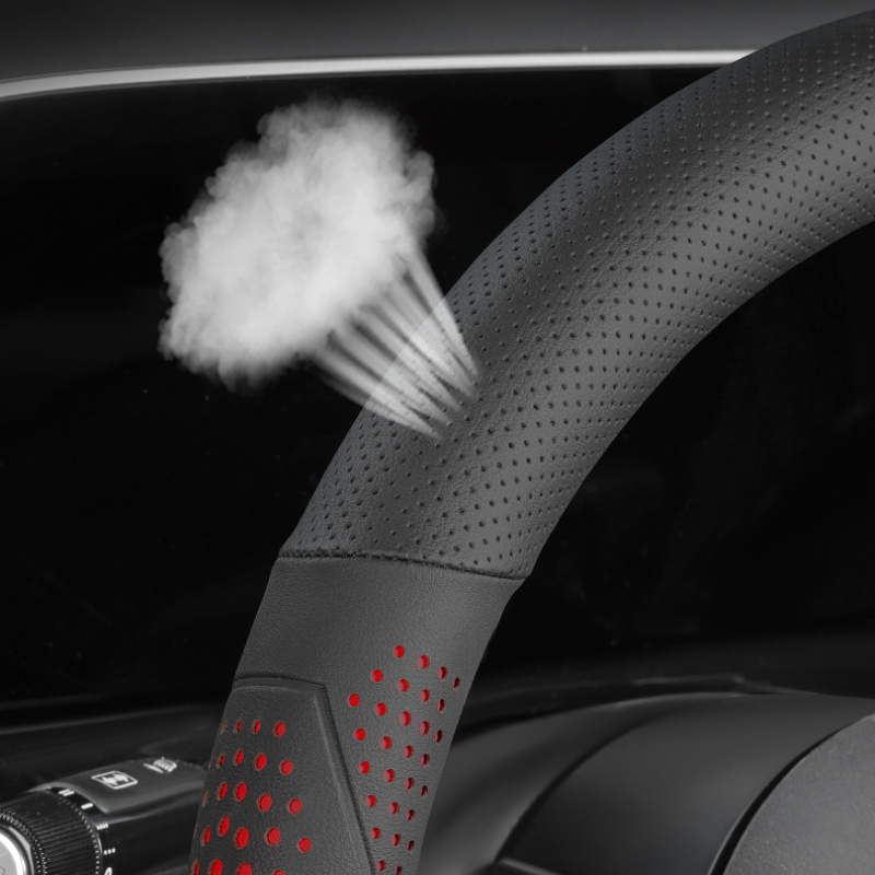 Ultra-Thin Breathable Genuine Leather Steering Wheel Cover with Anti-Slip Grip