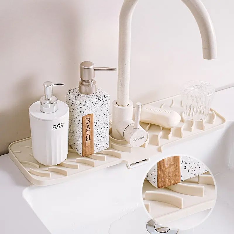 Wave‑shaped grooves guide water away instantly, keeping your sink area dry.